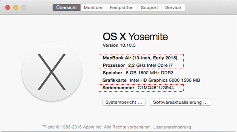 Ermitteln von Seriennummer und Produktinformationen unter OS X: